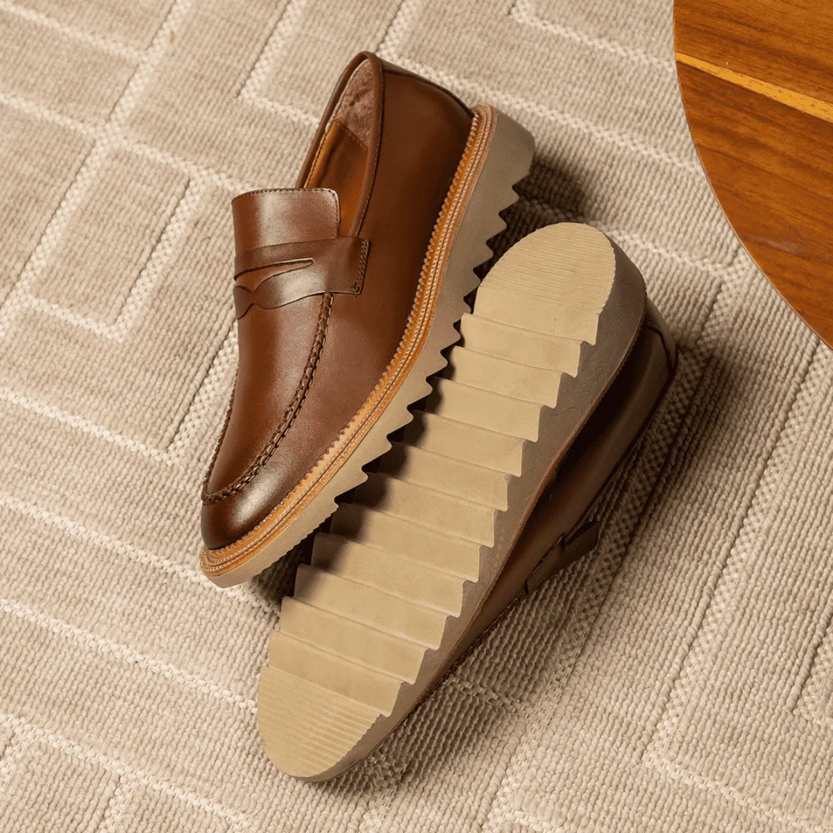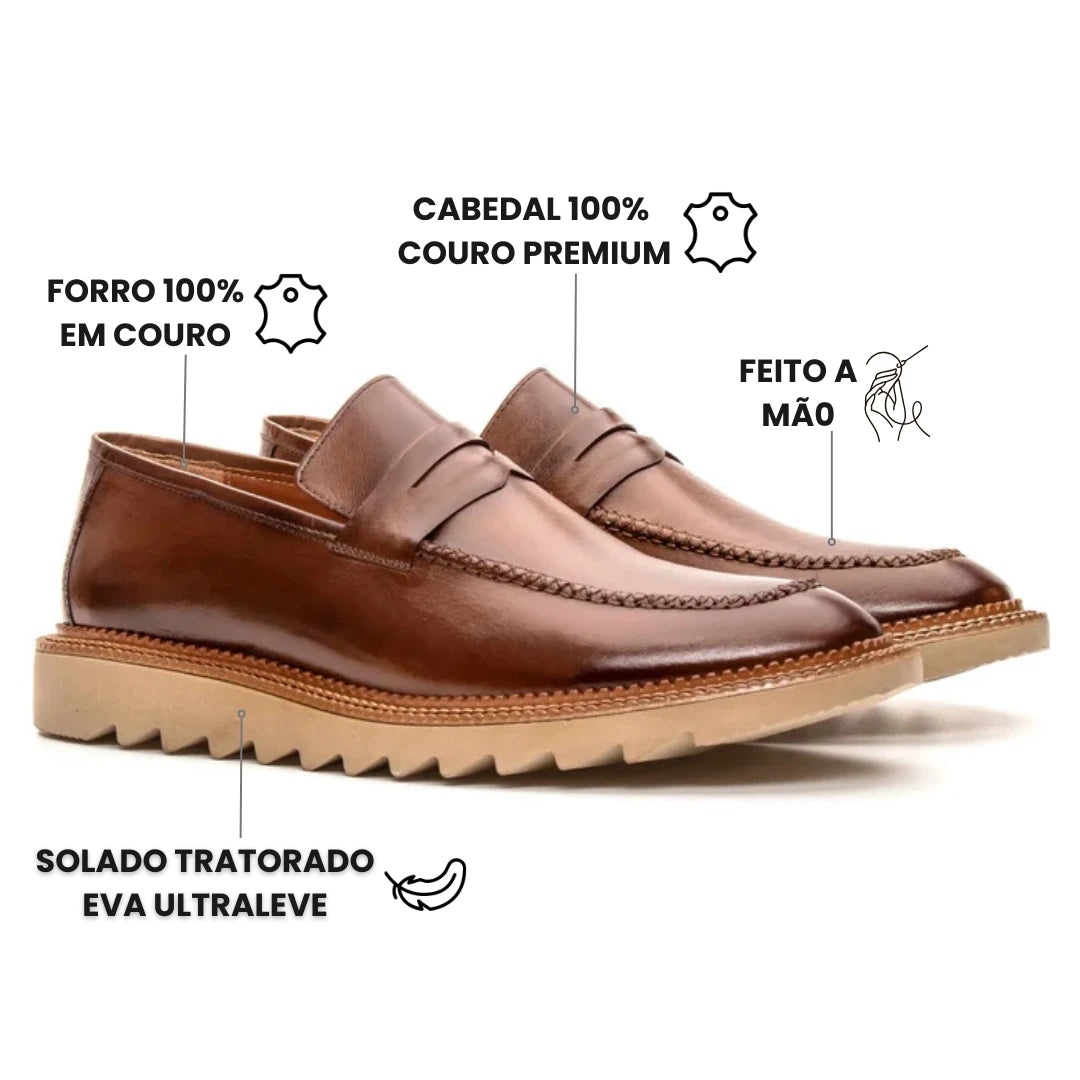 Fabricado em couro premium, o Sapato Loafer Clint oferece uma combinação perfeita de durabilidade e conforto. Seu solado tratorado em EVA traz leveza à pisada, enquanto a vira em couro cria um contraste visual harmonioso, elevando o estilo do sapato. A palmilha interna anatômica em espuma D60 proporciona um conforto excepcional, permitindo que você enfrente o dia com elegância e tranquilidade. O acabamento feito à mão garante a atenção a cada detalhe, assegurando um produto de alta qualidade.